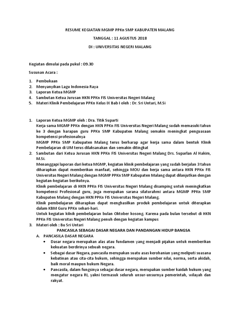 Resume Kegiatan Mgmp Ppkn 11 Agustus 2018 Pdf